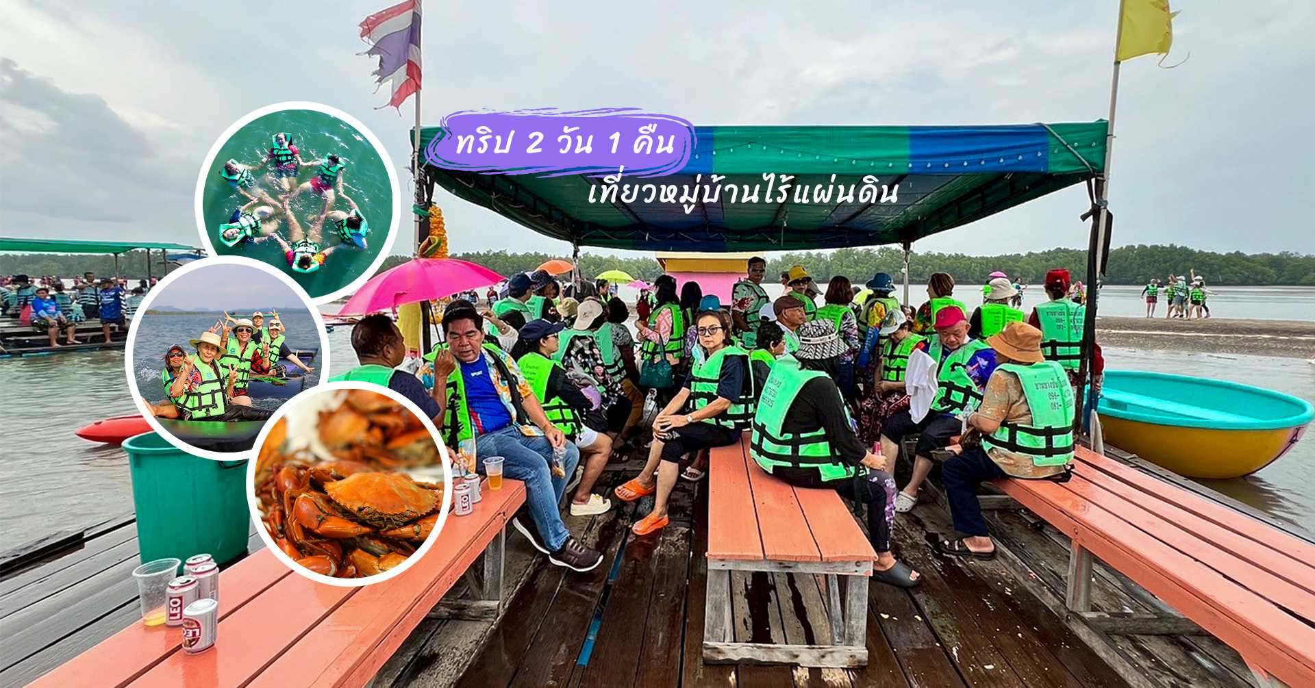 ประชากรที่อาศัยอยู่ที่หมู่บ้านไร้แผ่นดิน ปัจจุบันมีเกือบ 500 หลังคาเรือน มีประชากรอยู่มากกว่า 1,000 คน บางบ้านยังเห็นผู้เฒ่าผู้แก่ ที่เป็นคนไทยเชื้อสายจีน ที่สืบทอดมาจากบรรพบุรุษที่อพยพมา บางบ้านได้ปรับให้เป็นที่พักอาศัยแบบโฮมสเตย์ แปรรูปผลิตผลทางทะเล เช่น ทำกุ้งแห้ง กุ้งต้มหวาน กะปิ หมึกแห้ง ปลาเค็ม ขายสินค้าท้องถิ่น ของที่ระลึกให้กับนักท่องเที่ยวที่มาเที่ยวที่หมู่บ้าน เป็นต้น
